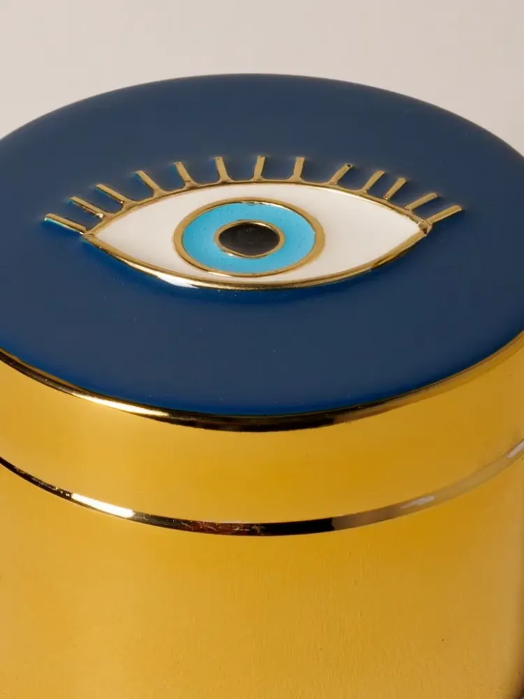 El detalle del ojo decorativo añade un toque moderno y simbólico a la pieza.