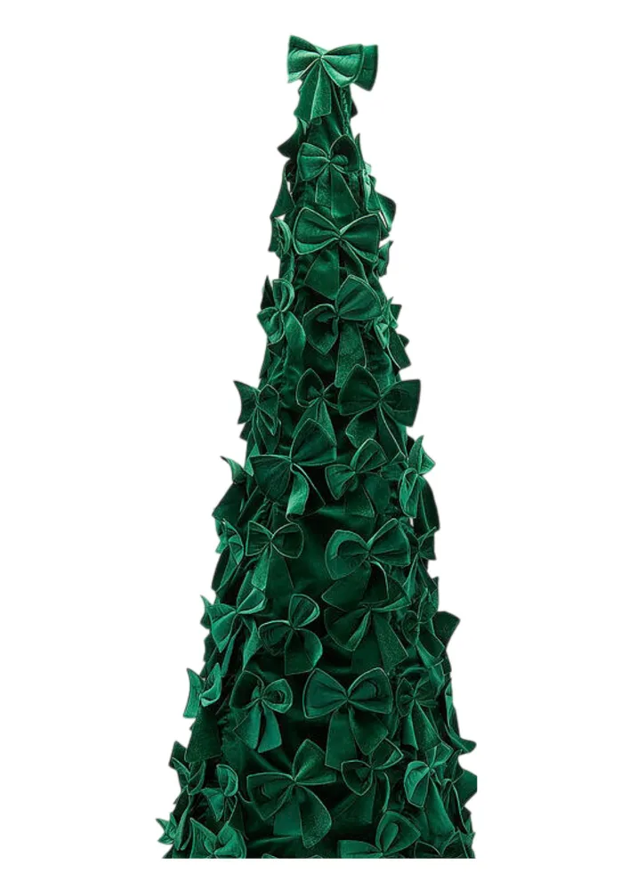 Árvore de Natal composta por delicados laços verdes, criando um visual original e encantador. Disponível em vários tamanhos, é perfeita para complementar a decoração natalícia com estilo e harmonia.