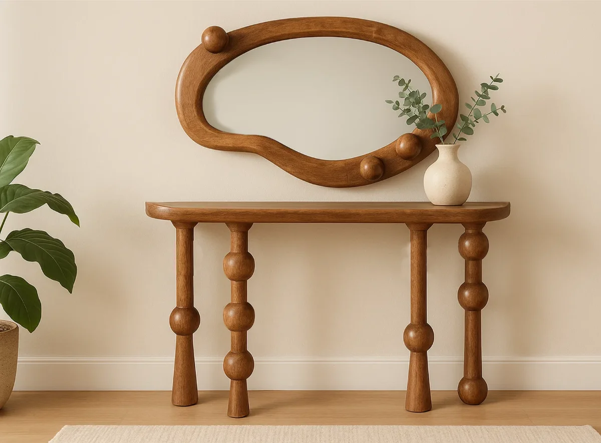 O Espelho Orgânico em Madeira de Manga Natural destaca-se pelo seu formato fluido e natural, trazendo leveza e personalidade à decoração. A moldura em madeira acrescenta calor e autenticidade ao espaço. Com design orgânico contemporâneo, estrutura em madeira de manga natural e forte presença decorativa, é ideal para criar ambientes acolhedores e sofisticados.