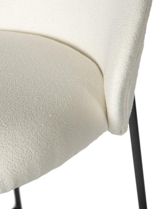 Esta cadeira alta em tecido bouclé branco combina conforto e design sofisticado, ideal para ambientes modernos e acolhedores. A sua estrutura robusta garante estabilidade, enquanto o tecido bouclé oferece textura suave e elegante. Perfeito para espaços de convívio, bares e cozinhas