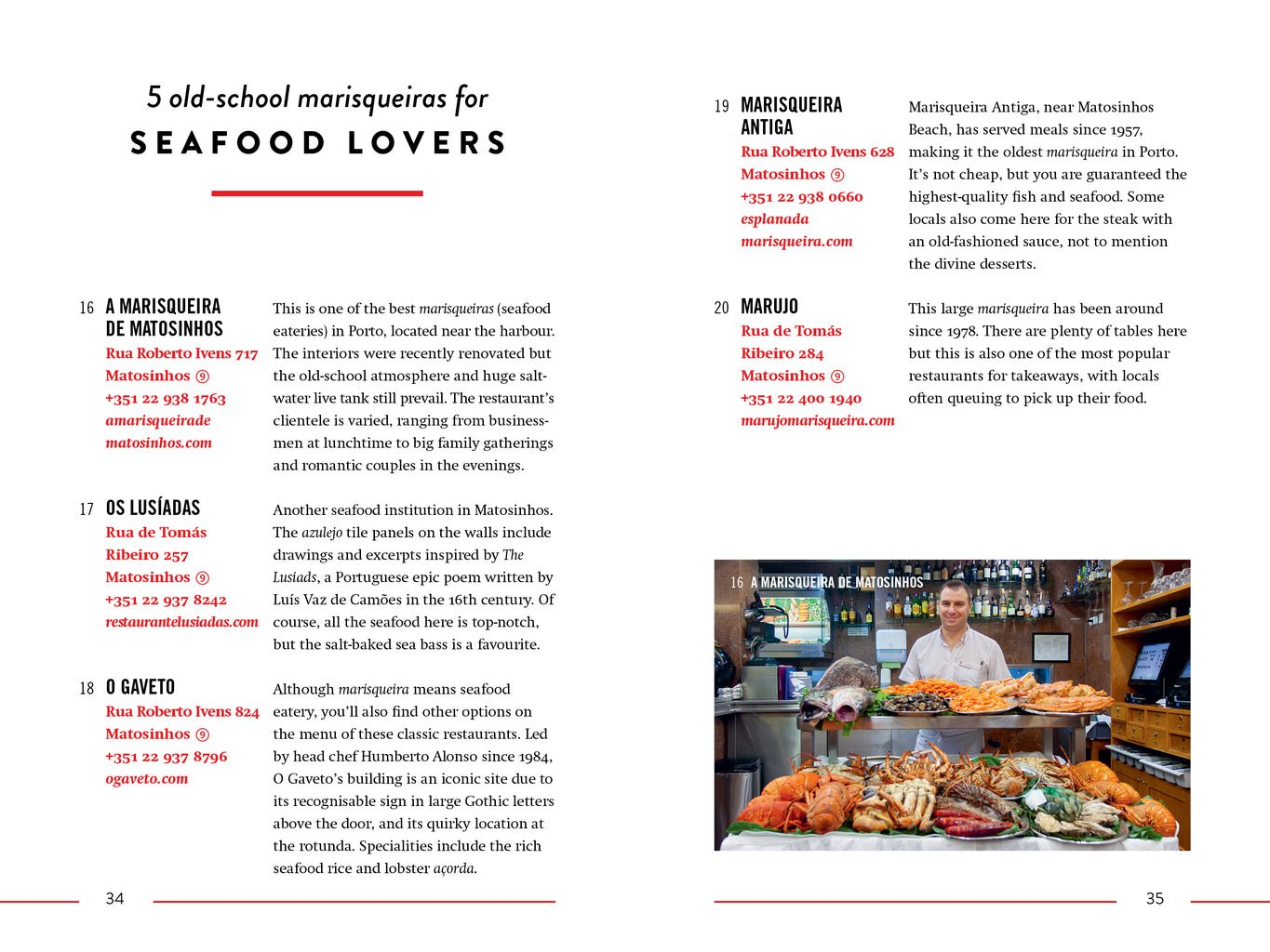 Neste guia, eles reuniram seu conhecimento local para visitantes que desejam descobrir os lugares menos conhecidos do Porto e para moradores que querem conhecer ainda melhor sua cidade. São 500 endereços e informações no total, apresentados em listas originais de 5. Inclui mapas e índice.